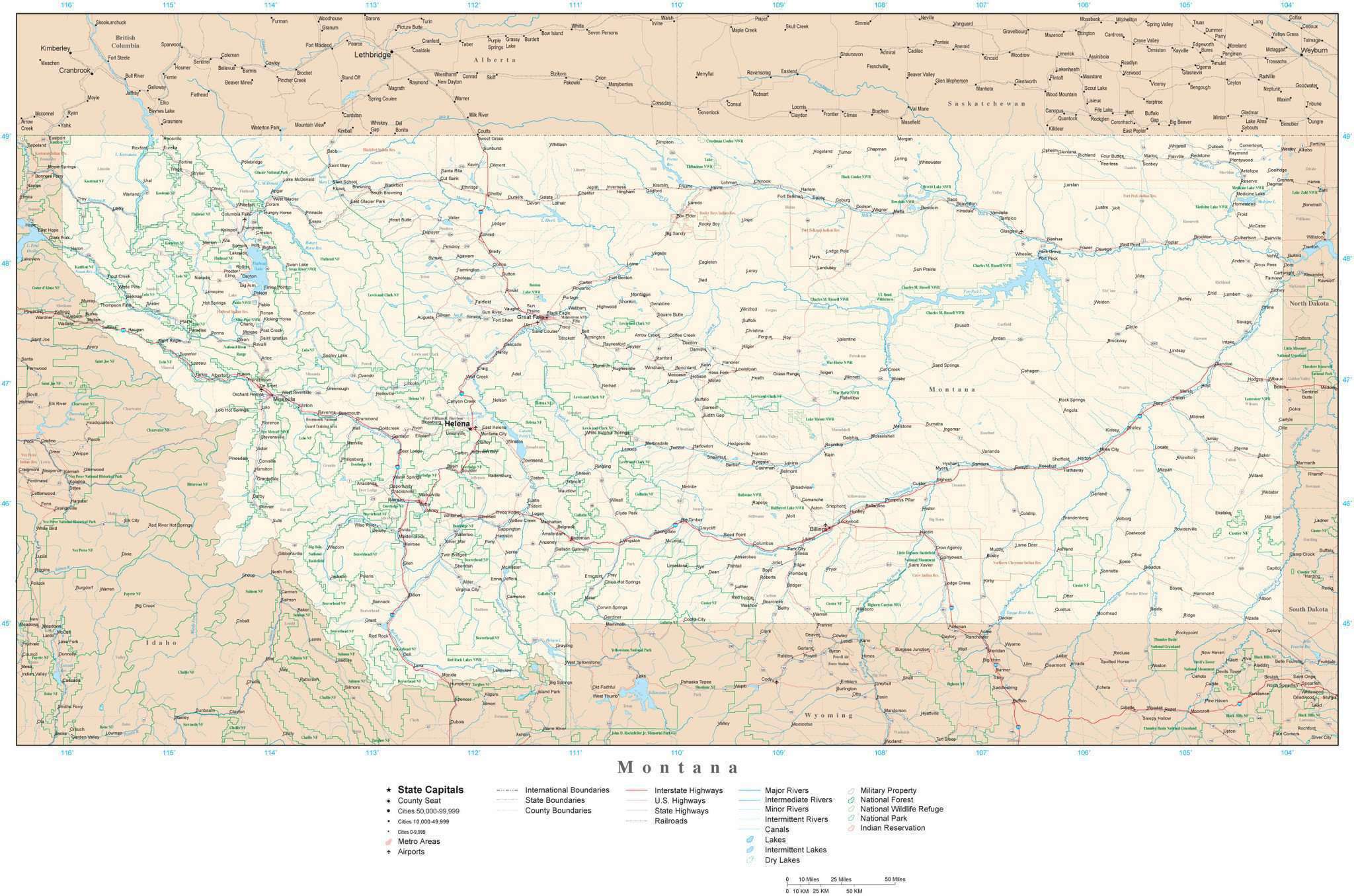 Montana Digital Vector Map with Counties, Major Cities, Roads